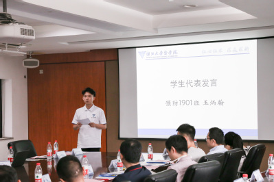 赵丽娜、陈超、田宇倩分别就医学院的培养方案、思政工作和班主任工作进行了介绍,明确了班主任在学业教育、思想引领、班级建设等方面的工作内容。随后,校级优秀班主任盛静浩老师作为分享了班主任工作的经验,以“积极组织参加学生班团活动”的班级管理方式为新生班主任提供班级组建的经验。预防医学1902班王炳翰同学作为学生代表发言,对班主任表达感激之情,并提出合理的建议。