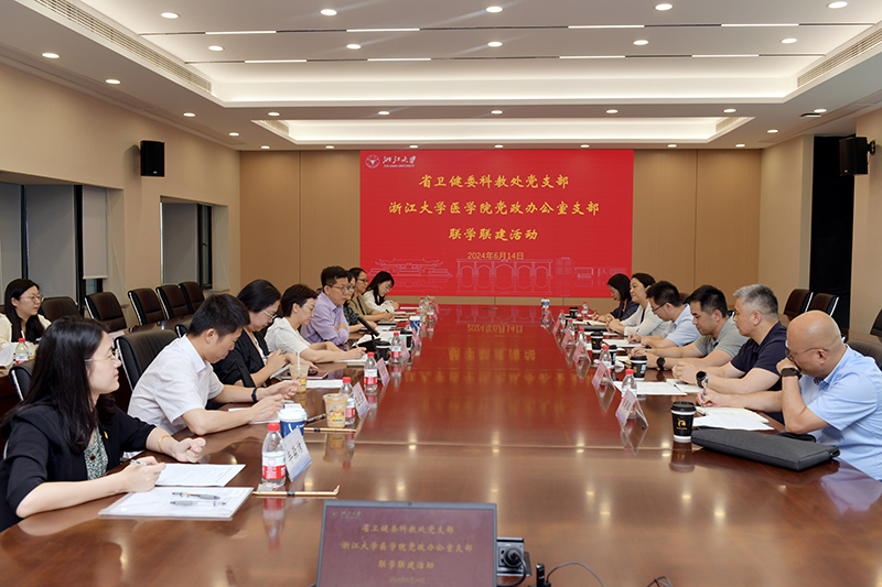 614日下午,医学院党政办支部与浙江省卫生健康委员会科教处党支部开展联学联建活动。省卫健委科教处党支部书记、科教处处长王涌带领科教处一行参加活动。浙江大学党委常委、副校长兼医学院党委书记李晓明及医学院党政办支部党员参加座谈会,会议由医学院党政办支部书记、医学院党委副书记、纪委书记徐凌霄主持。